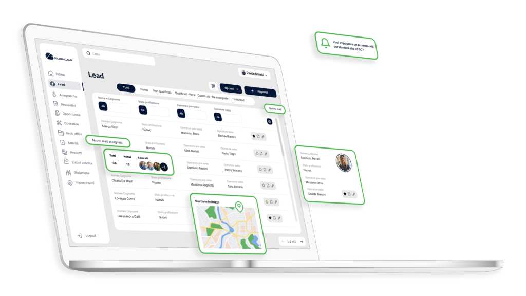 Utilizza strumenti avanzati per gestire le campagne di marketing, tracciare l’interesse dei potenziali clienti e automatizzare le attività di follow-up. Con il nostro sistema, puoi ottimizzare il processo di acquisizione dei clienti, garantendo un flusso continuo e qualificato di opportunità per il tuo team di vendita.